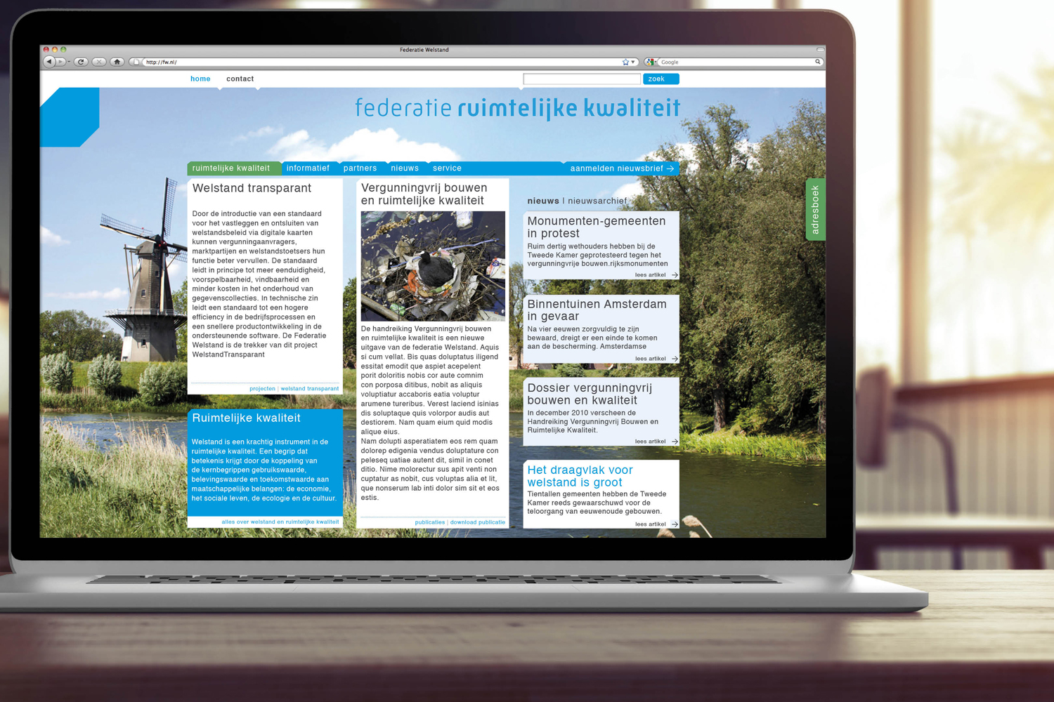 Informatieve en aantrekkelijke website voor de Federatie Ruimtelijke Kwaliteit, op basis van de eerder ontworpen website voor de Federatie Welstand.